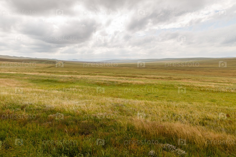 Монгольская степь, монгольская степь с зеленой травой красивый пейзаж. Монголия