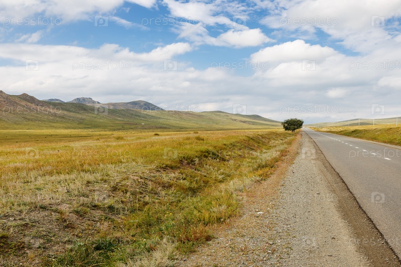 Асфальтированная дорога Дархан-Улан-Батор в Монголии, красивый монгольский пейзаж, Туве Аймак. Баруунхараа