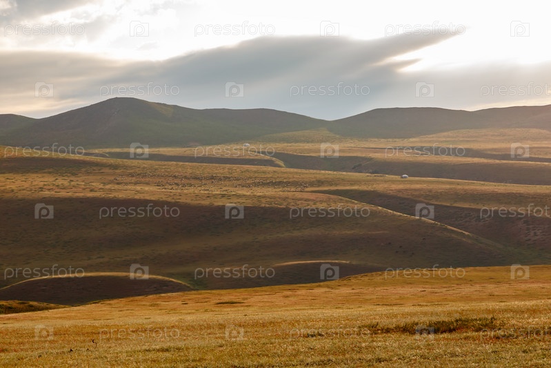 Монгольская степь, красивый пейзаж на закате