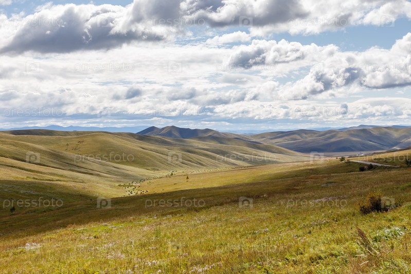 Монгольская степь на фоне облачного неба, красивый пейзаж. Монголия