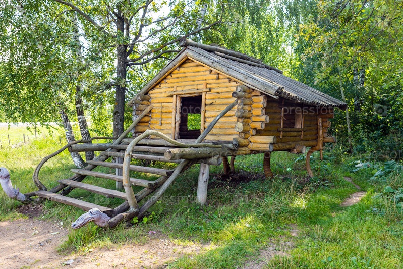 Сказочный деревянный дом, бревенчатый домик с деревянным крыльцом