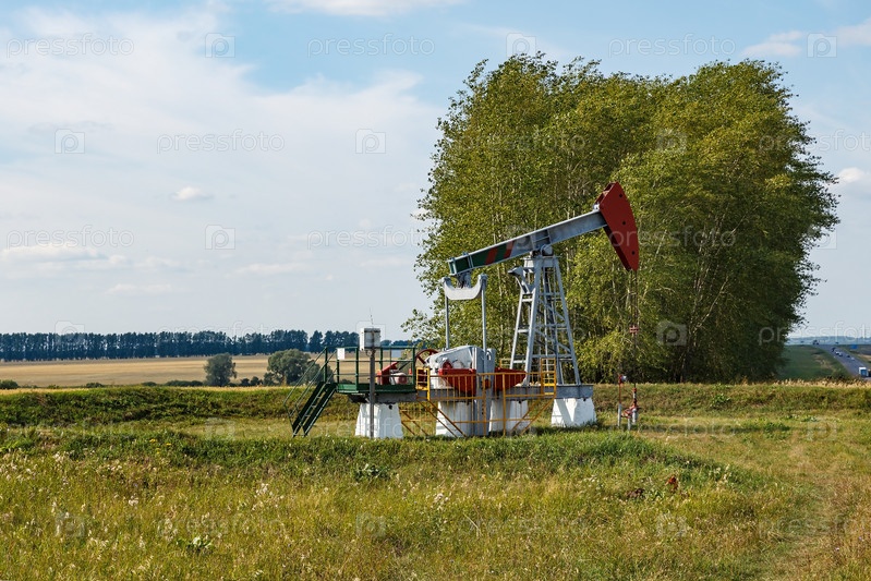Нефтяной насос в поле. Нефтяная промышленность, Россия
