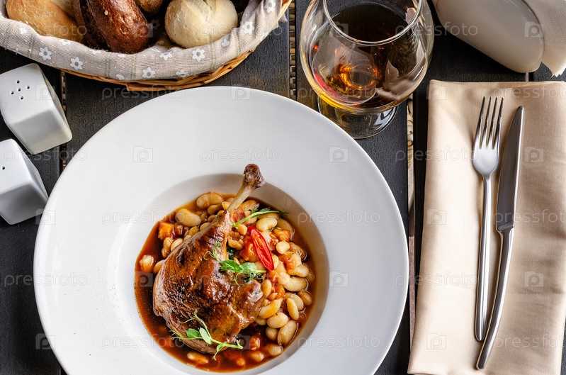 Утиная ножка конфи с гарниром из белой фасоли