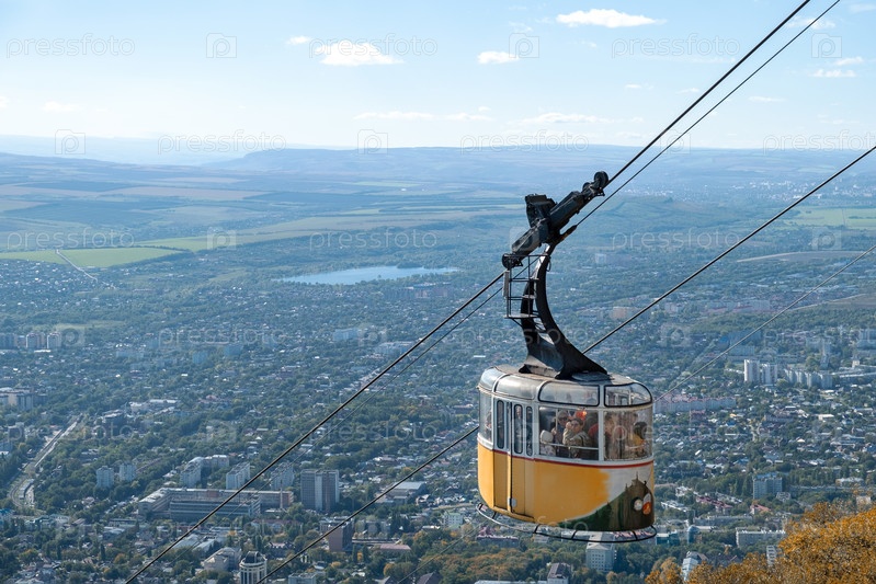 Канатная дорога с туристами на горе Машук