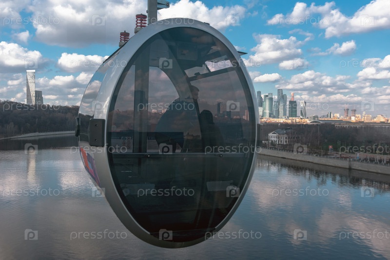 МОСКВА, РОССИЯ - 21 февраля 2020 г. Вид из кабины первой московской канатной дороги через Москву-реку (Москва)
