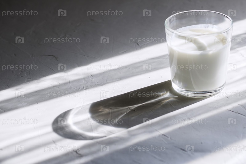 Органический пробиотический молочный кефирный напиток или йогурт в стеклянной таре, на белом сером фоне. Здоровье кишечника. Молочный напиток холодного брожения с пробиотиками. Модная еда и напитки. Теневой тренд Копировать пространство