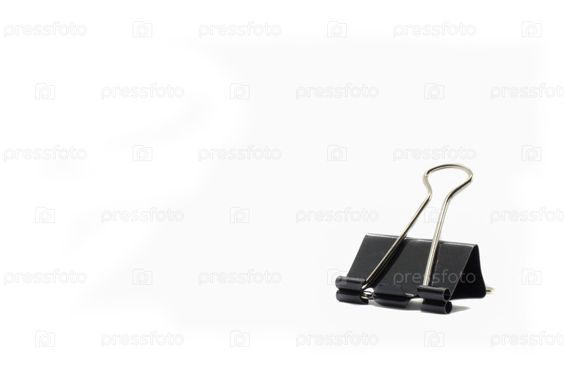 Черная скрепка для канцелярских принадлежностей на белом фоне, бизнес-аксессуар