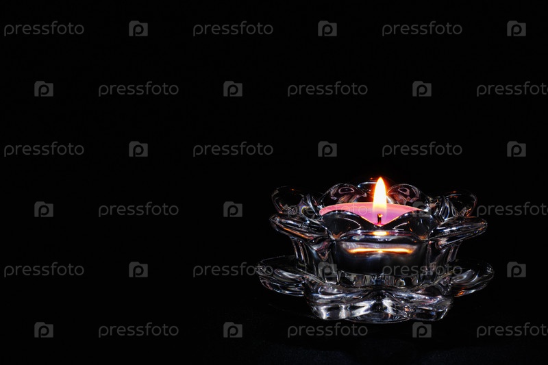 Свет свечи на черном фоне, крупный план подсвечника, горящее пламя, дизайн