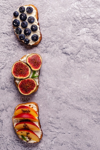 Домашний летний тост со сливочным сыром, ореховым маслом и фруктами и ягодами