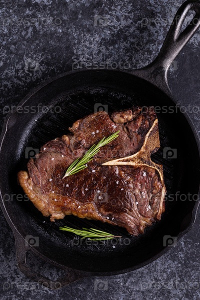 Стейк из говядины на гриле со специями на сковороде