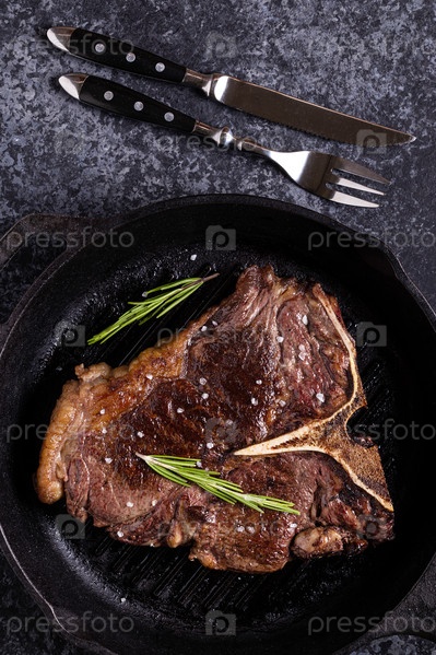 Стейк из говядины на гриле со специями на сковороде