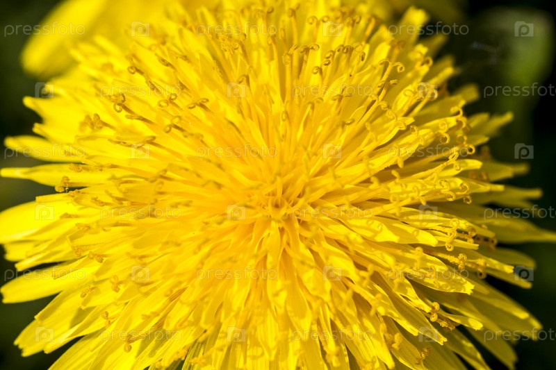Ярко-желтый одуванчик весной. Изображение крупным планом. Нежный цветочный фон. Мягкий фокус