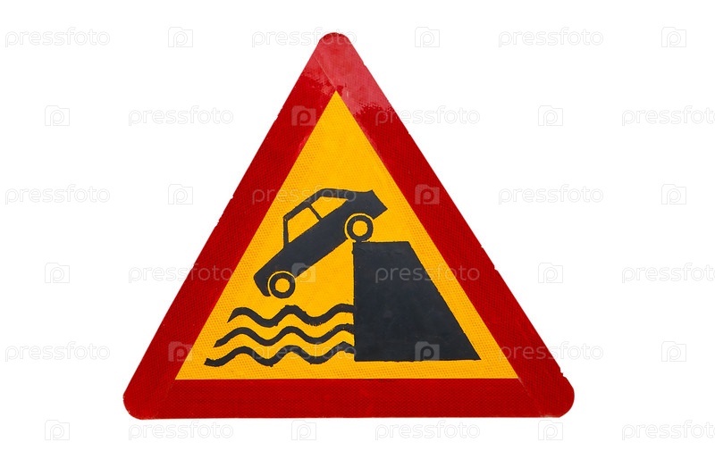 Дорожный знак Выезд на набережную, Дорожный знак о том, что машина может упасть в реку