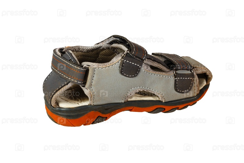 Одна из детских сандалий на белом фоне