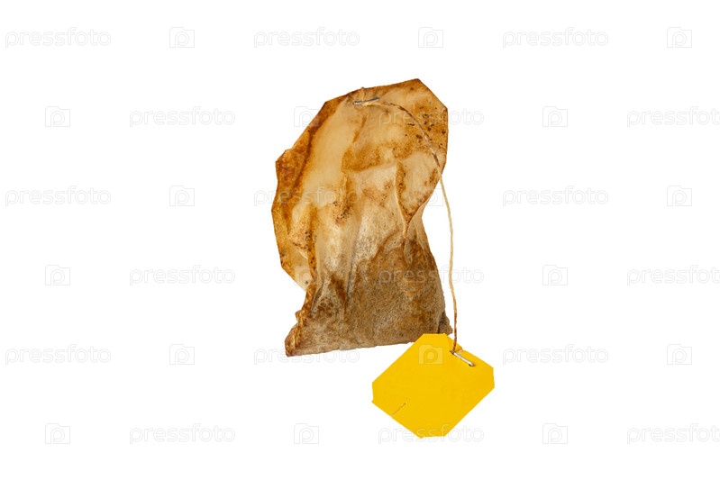 Использованный чайный пакетик на белом фоне