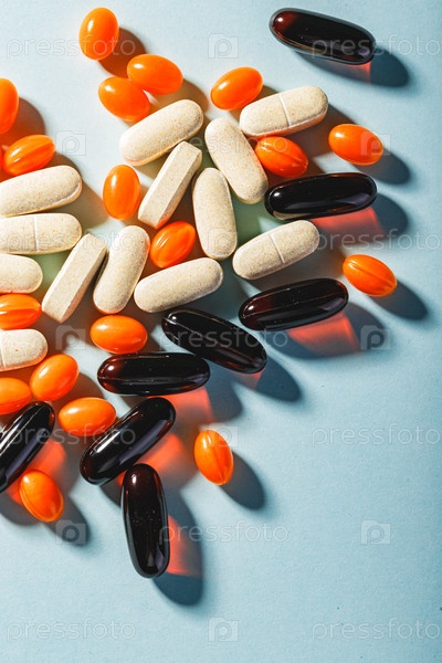 Красочные таблетки на синем фоне