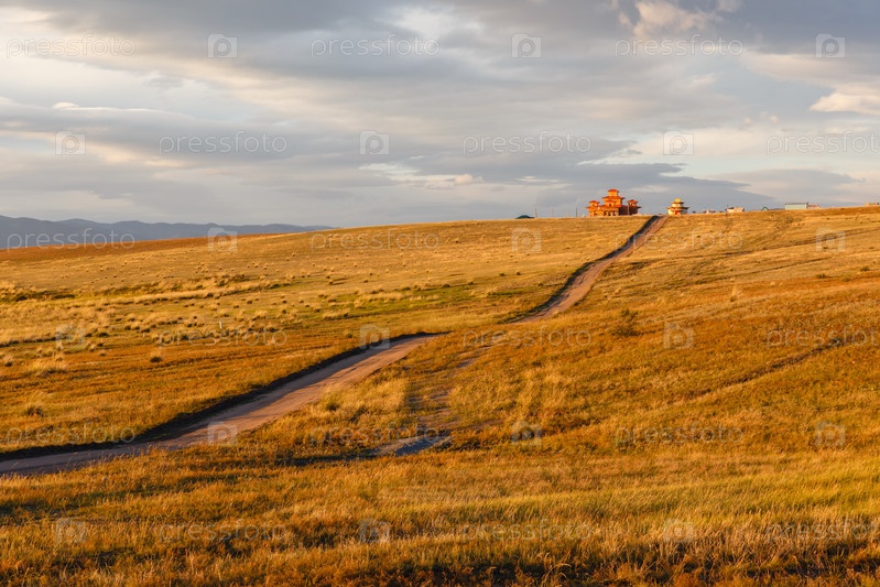 Загустайский дацан Бурятия, красивый пейзаж на закате
