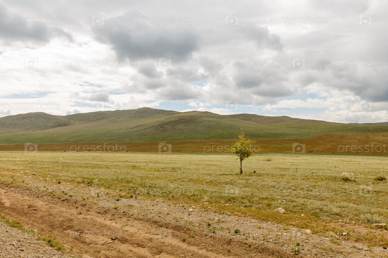 Одинокое дерево в степи, красивый пейзаж, Бурятия, Россия