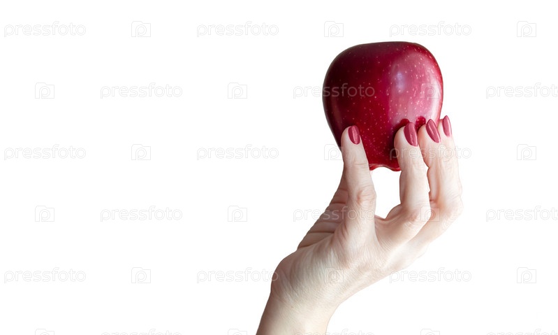 Женская рука держит красное яблоко крупным планом