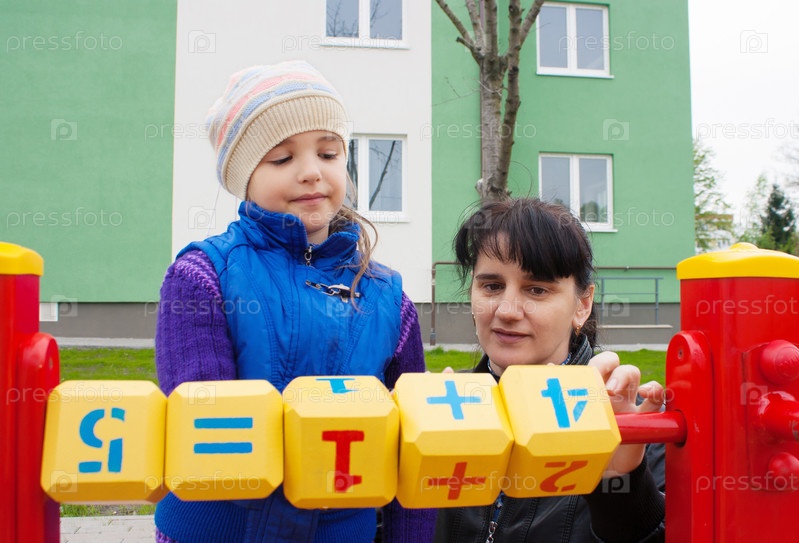 Мама и дочка играют в кубики с числами