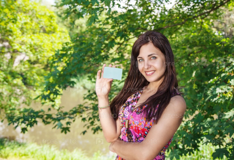 Девушка с кредитной картой в парке