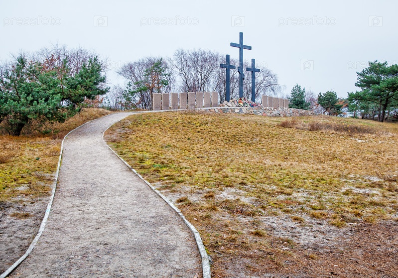 Три каменных креста на старом кладбище