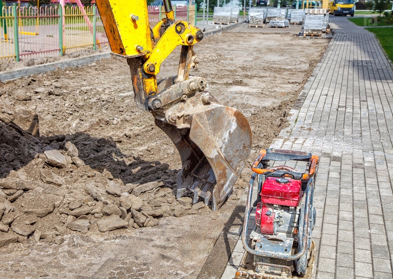 Строительство новой дороги. экскаватор готовит поверхность