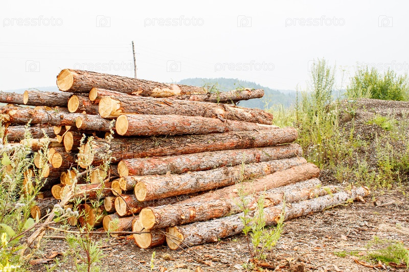 Сосновые бревна готовые к транспортировке