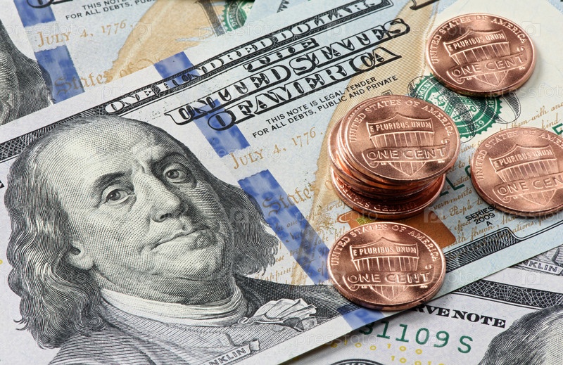 Монеты в один цент и банкноты доллара