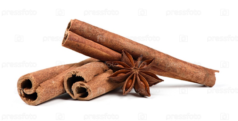 Палочка корицы и анис на белом