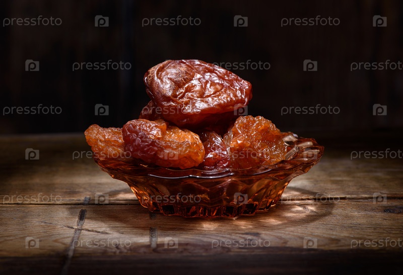 Курага на фоне темного дерева