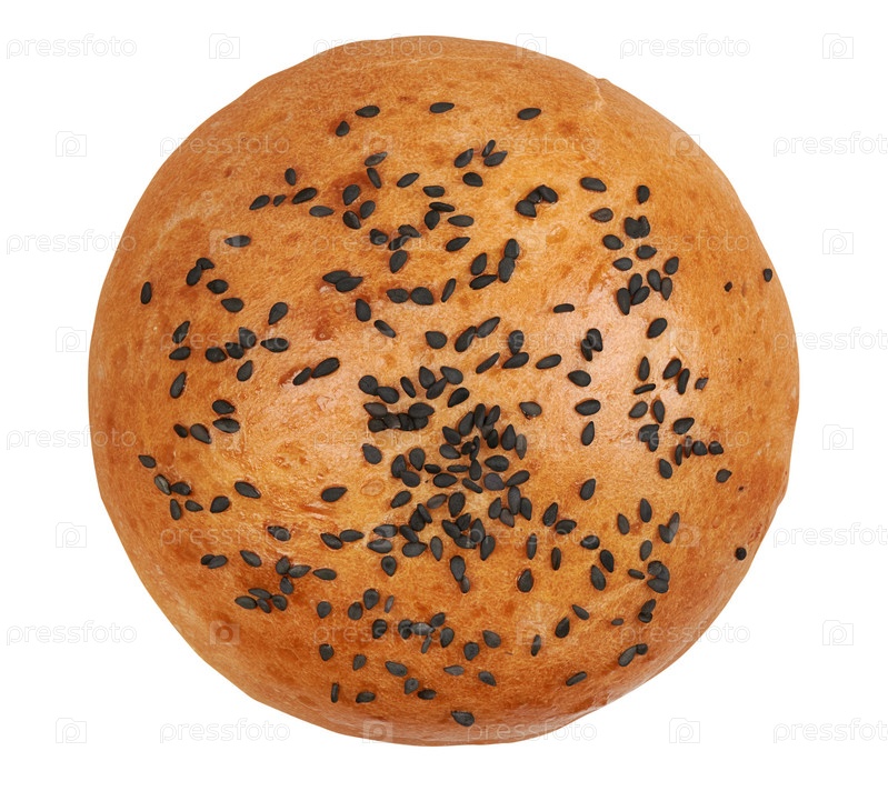 Булочка для гамбургера с семенами кунжута изолирована на белом. Бургер вид сверху