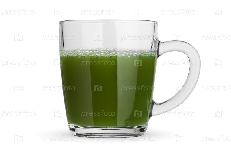 Зеленый чай маття в стеклянной чашке. Изолированные на белом фоне