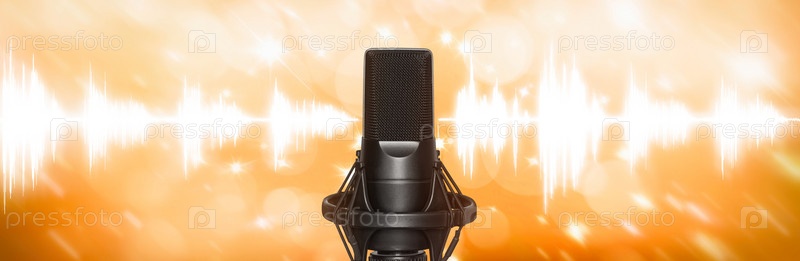 Микрофон на абстрактном красочном ярком фоне
