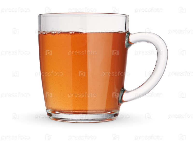 Стеклянная чашка горячего черного чая, изолированная на белом