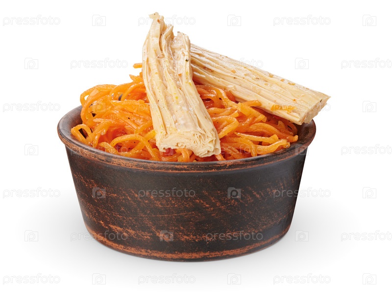 Морковча. Салат из корейской моркови со спаржей в миске