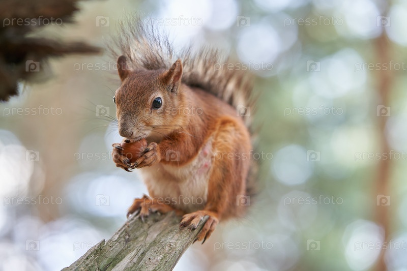 Белка на дереве ест фундук