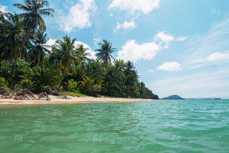 Пляж Таиланда с пальмами и голубым небом