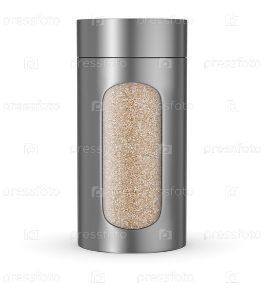 Пищевая банка с ржаными отрубями на белом фоне