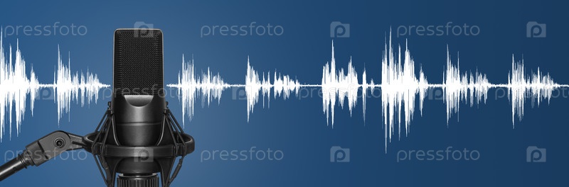 Современный студийный микрофон с аудиосигналом