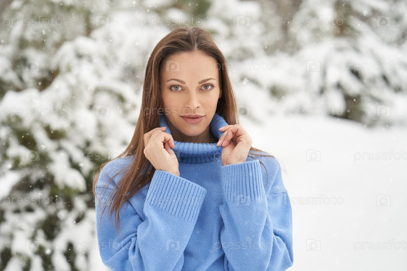 Модная молодая женщина в зимнем парке