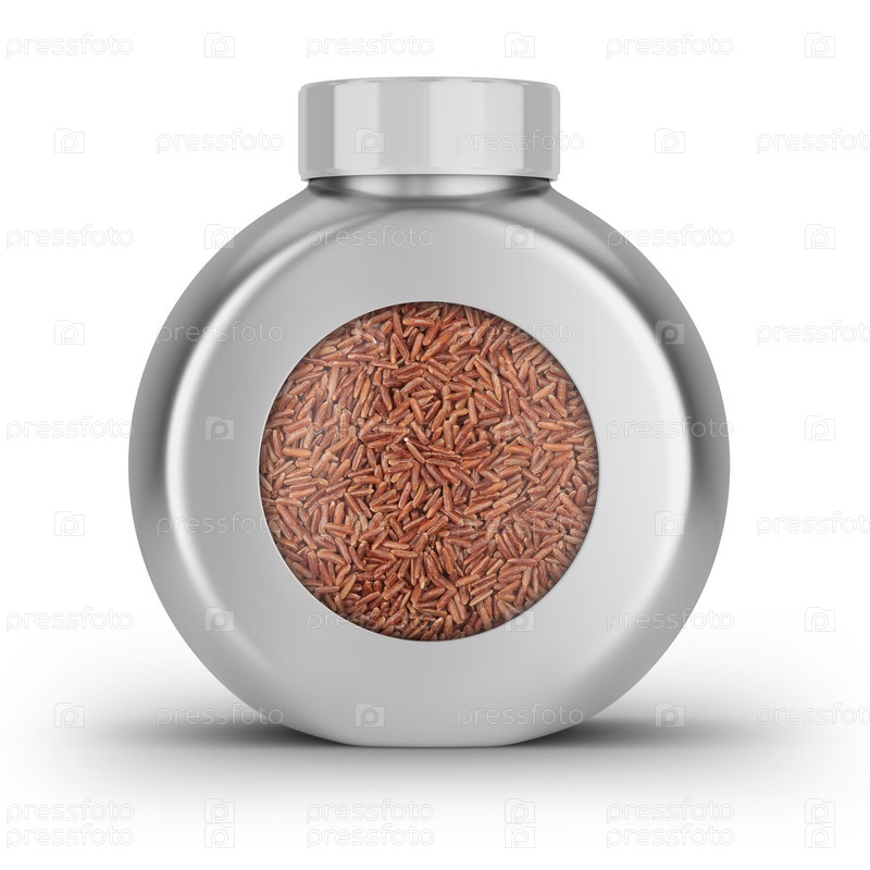 Коричневый цельнозерновой рис в изолированном контейнере