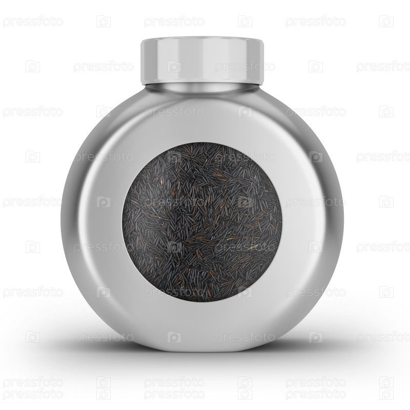 Черный или фиолетовый рис в контейнере, изолированном на белом
