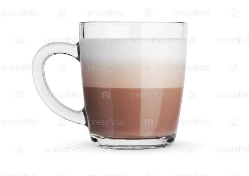Сокоа - напиток с молоком в стеклянной кружке.Изолированный