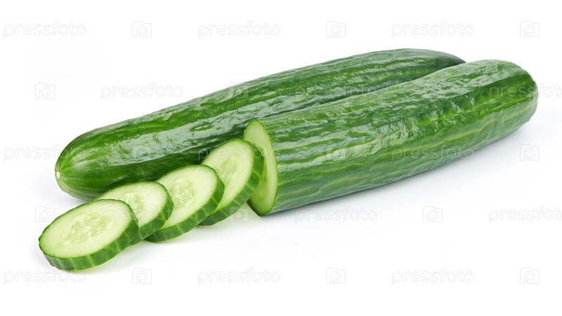 Огурец с ломтиками на белом фоне