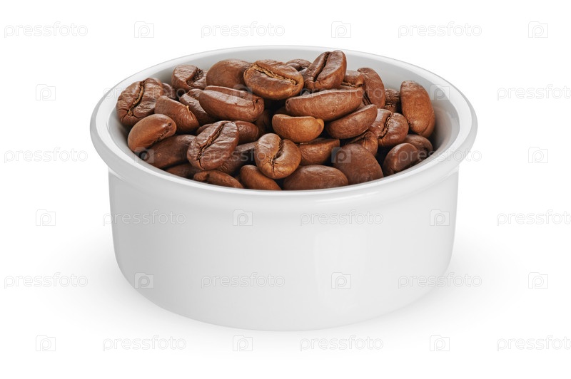 Кофейные зерна в миске. Отдельный на белом фоне