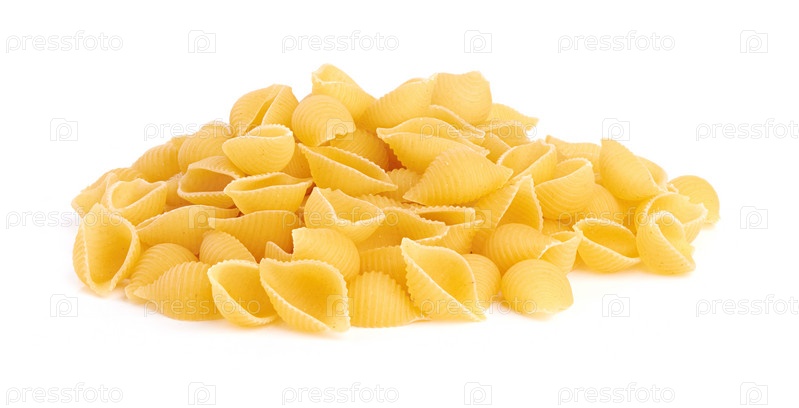 Сырая итальянская паста из ракушек. Куча сырых макаронных изделий