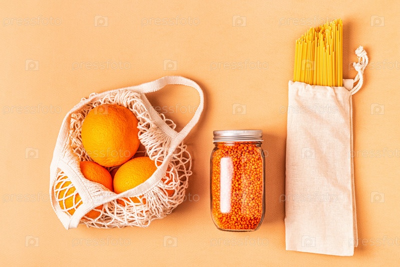 Изделия в тканевых мешках, стеклянная посуда. Экологичный шопинг