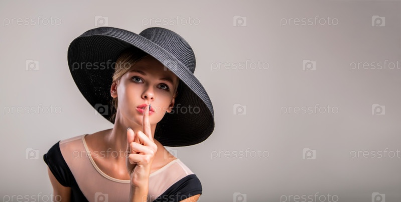 Романтический портрет красивой молодой девушки на светлом фоне в элегантной шляпе