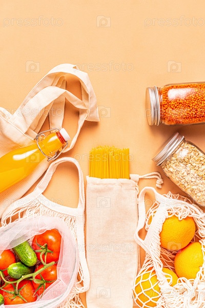 Изделия в тканевых мешках, стеклянная посуда. Экологичный шопинг